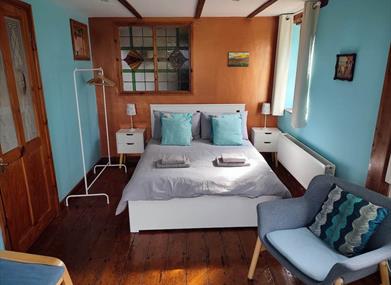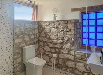 Mae'r ystafell ymolchi hardd ar y llawr gwaelod, ochr yn ochr â'r brif ystafell wely, ac mae ganddi gawod fodern y gellir cerdded i mewn iddi. Mae'r brif ystafell wely'n berffaith ar gyfer oedolion, gan roi cyfle iddynt ymlacio mewn moethusrwydd, gan gynnwys dwy gadair esmwyth, teledu a llosgwr pren. Ar y llawr cyntaf ceir dwy ystafell wely arall. Mae un ohonynt yn meddu ar wely dwbl clyd a adeiladwyd at y diben ac mae gan y llall bedwar gwely bync gosod pwrpasol sy'n addas i blant neu oedolion.