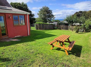 Mae'r bwthyn yn destun trafod unigryw oherwydd ei addurniadau mewnol a gafodd eu dylunio a'u saernïo â llaw gan y perchnogion. Mae cegin osod fodern ac ystafell fyw cynllun agored yn cynnig golygfeydd dros yr ardd tuag at y môr. Ceir yr holl gyfarpar y bydd ei angen arnoch yn ystod eich arhosiad, ynghyd â man byw agored a golau sy'n berffaith ar gyfer ciniawa, nosweithiau gemau neu ymlacio o flaen y teledu. Mae drysau'n arwain at ardd laswelltog hyfryd lle gallwch eistedd a mwynhau'r golygfeydd godidog.