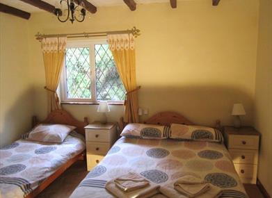 Llety (1) Tair ystafell wely; dwy ddwbl ac un â phâr o welyau; y tair ystafell yn rhai en-suite. Cegin â'r holl gyfarpar, ystafell fwyta, lolfa â ffenestri patio sy'n arwain allan i ardal ddec uchel a gardd breifat sy'n edrych dros y coetiroedd.