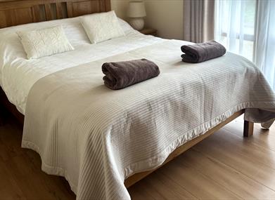 Bwthyn hunanarlwyo 4 ystafell wely ar gyfer hyd at 8 o westeion sydd ag ystafell wely ddwbl â chyfleusterau ensuite cyfleus ar y llawr gwaelod.