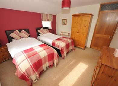 Lle cysgu i ddeg o bobl + crud mewn pum ystafell wely en-suite, a phob un ohonynt â theledu lliw sy'n chwarae DVD (mae un o'r ystafelloedd gwely ar y llawr gwaelod).