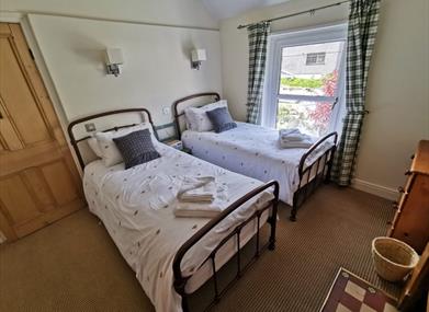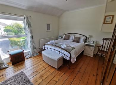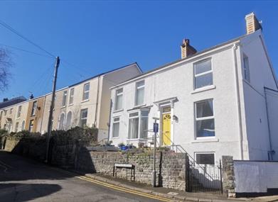 O'r cyntedd, mae grisiau'n arwain at ddwy ystafell wely. Yn yr ystafell wely fawr ym mlaen yr eiddo, ceir gwely dwbl, dodrefn traddodiadol (o'r oes Edwardaidd hwyr) a dwy ffenestr y mae un ohonynt yn cynnig golygfeydd o Fae Abertawe. Yn yr ystafell wely yn y cefn, ceir gwely maint brenin mawr sy'n rhoi hyblygrwydd gwych (h.y., gellir ei ddefnyddio fel y mae neu fel dau wely 2 x 3 troedfedd o led).