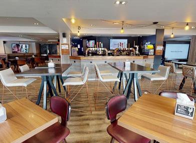 Amrywiaeth o fwyd a diog ym mwyty Vinny & Vino World Tour Kitchen gydag awyrgylch gyfoes, ymlaciol - mae'n bosib i ddau berson fwyta pryd o fwyd am £29 rhwng dydd Llun a dydd Iau.