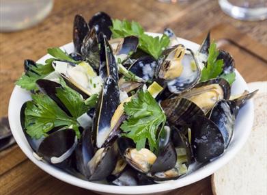 Dewch i fwyta yn ein bwyty sy’n wynebu’r môr a mwynhau golygfeydd godidog o draeth Bae Oxwich drwy'r ffenestr neu addurniadau trawiadol ein Chestnut Room.