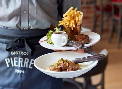 Mwynhewch brydau Ffrengig a bwydlenni tymhorol sy'n cynnig gwerth gwych am arian, gan gynnwys hen ffefrynnau megis stêc a ffreis, boeuf bourguignon a crème brûlée, sydd bob amser yn boblogaidd, ochr yn ochr â detholiad o ddanteithion rhanbarthol wedi’u coginio’n ffres gan dîm o gogyddion talentog bob dydd.