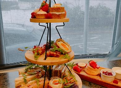 - Yn gweini te prynhawn