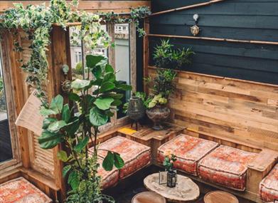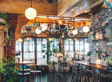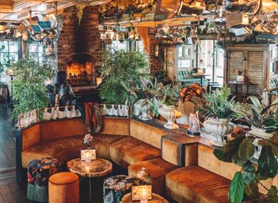 Mae dros 350 math gwahanol o jin ar gael, yn ogystal â choctels o far ‘The Secret Garden’ Rum & Fizz ar y llawr oddi tanodd.