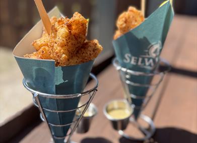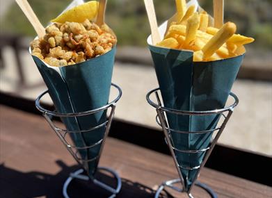 Dictated by seasonality and sustainability, we produce and purchase our products primarily from Welsh fishermen – from our Penclawdd cockle and Laver gatherers, Pembrokeshire lobster and crab, Atlantic Edge, Pembrokshire oysters, line caught Swansea Bay and Gower fish and a range of the very best products directly from all corners of the British coastline. Along with our shack shop we offer a delicious seafood menu for lunch, from deep fried cockles, Laverbread bites to garlic king prawns washed down with your favourite tipple.
