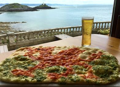Gallwch giniawa wrth arsylwi ar olygfeydd syfrdanol o Fae Bracelet a Goleudy'r Mwmbwls yn ein bwyty, yn y bar-gaffi i deuluoedd neu yn yr ystafell achlysuron.