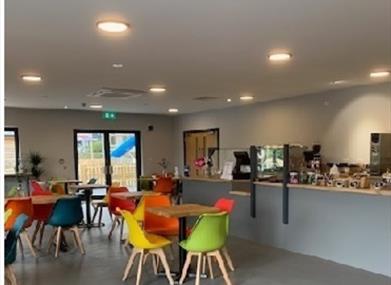 Mae’r caffi wedi ei leoli yn Yr Ysgubor, lle mae gennym ystafelloedd digwyddiadau i llogi.